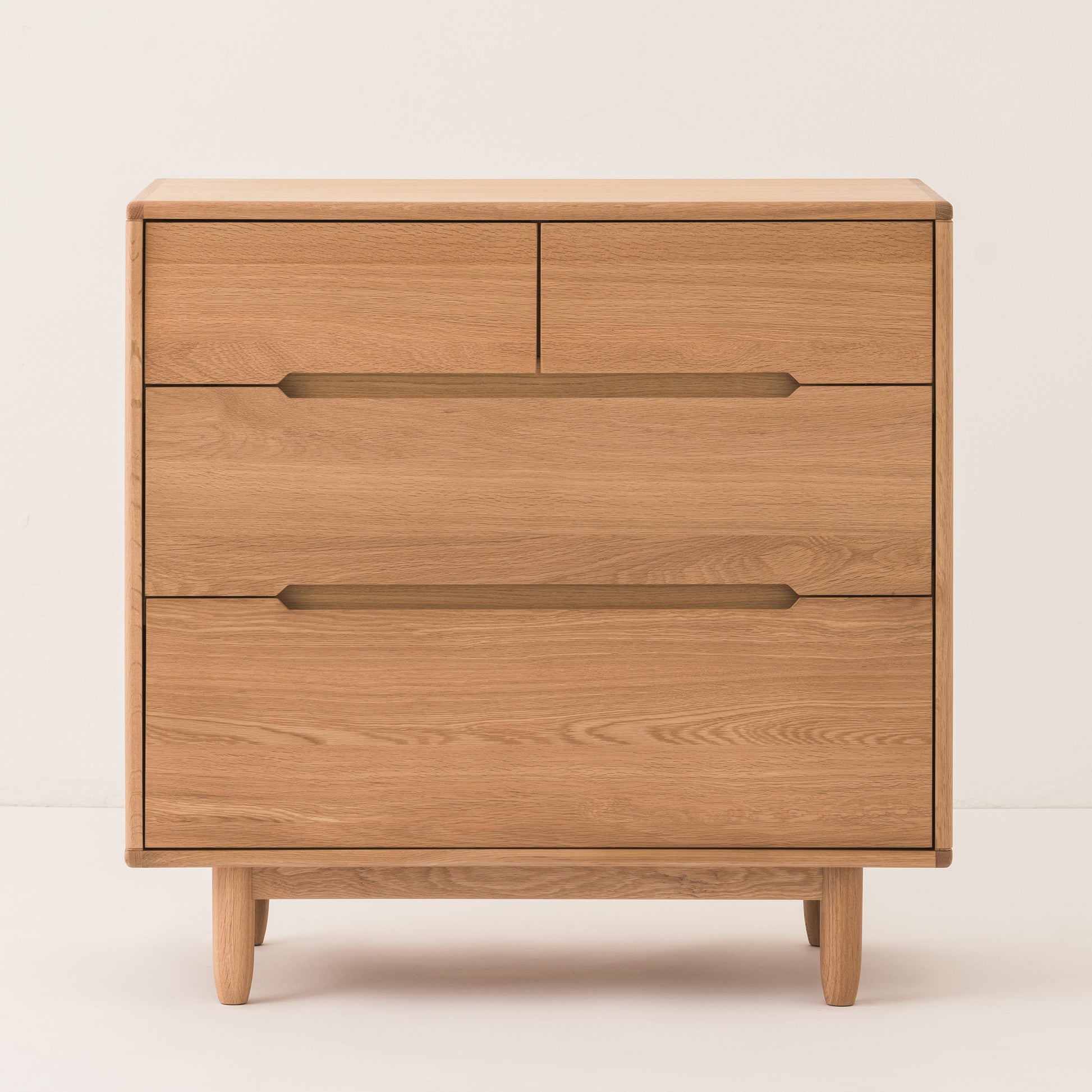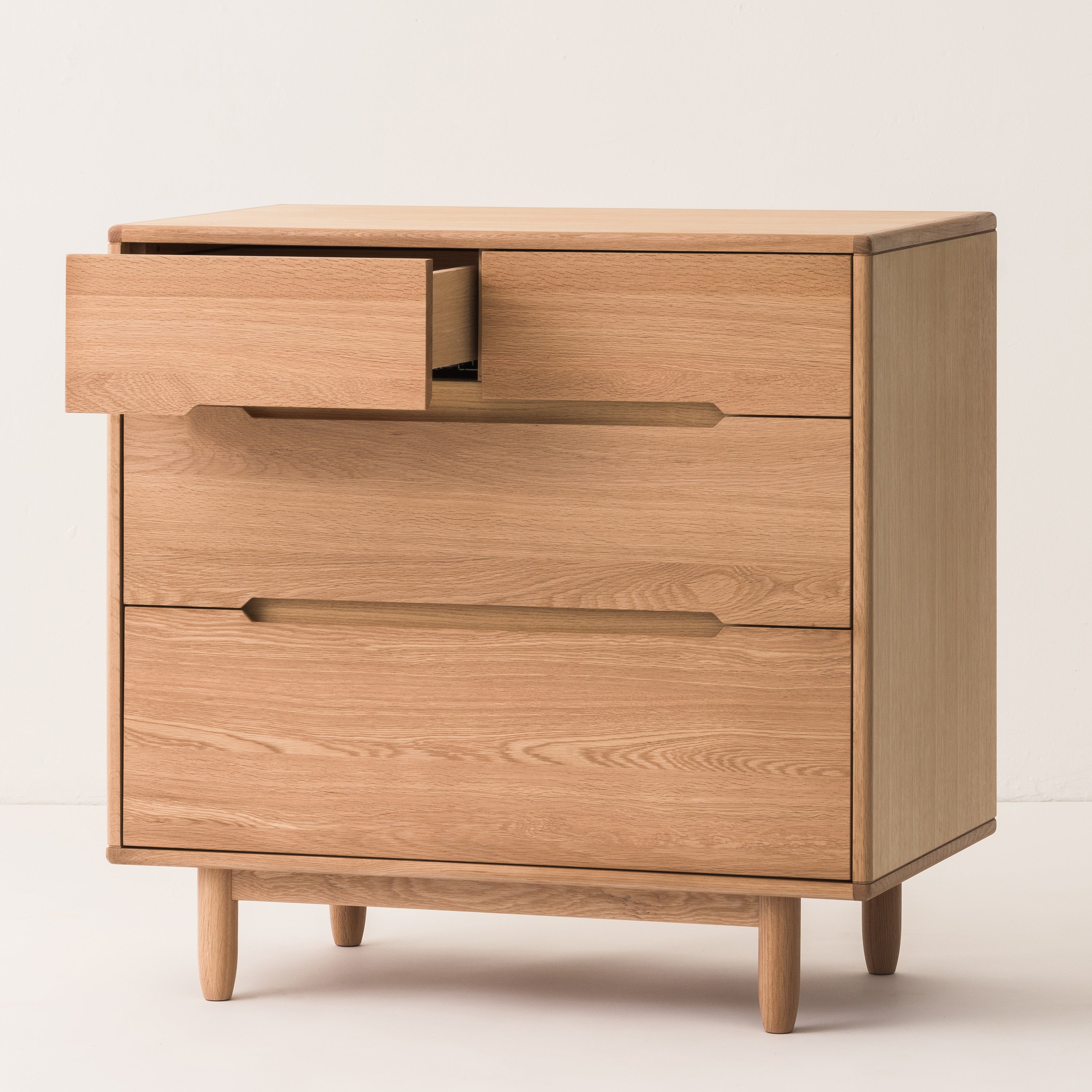 Thanks to our Pure chest of drawers in solid oak wood and its 4 drawers of different sizes, the dream of having a tidy and stylish bedroom for your child becomes a reality!