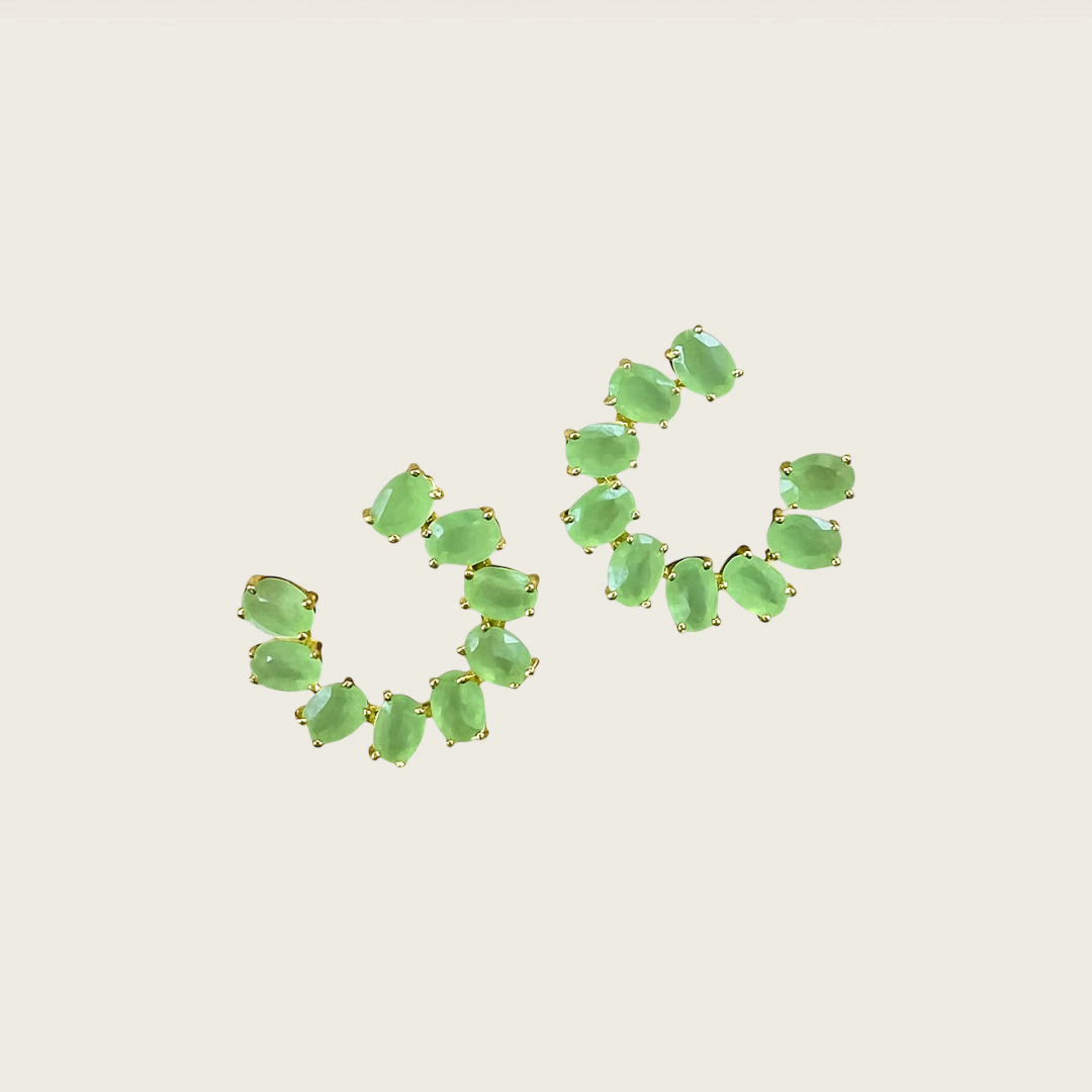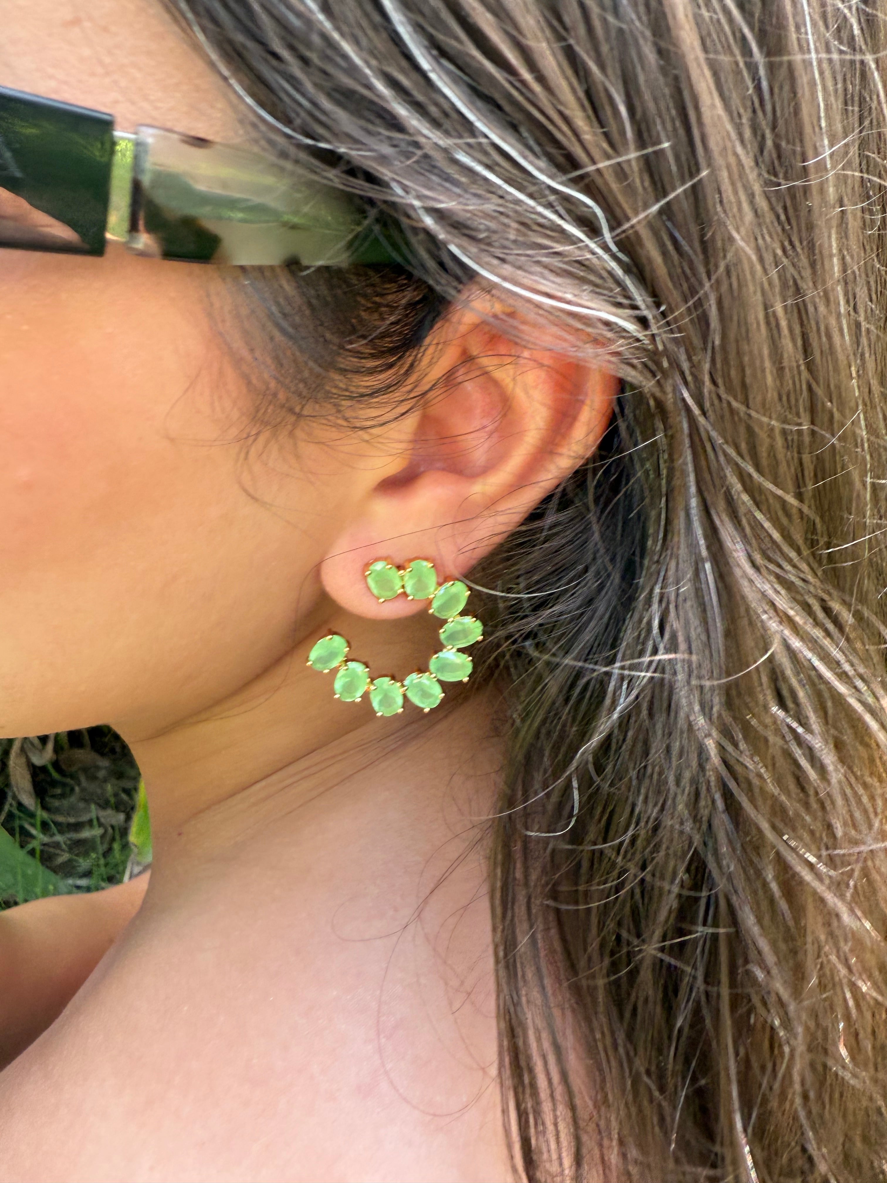 Elegant and refined, the Olive Earrings combine a durable, hypoallergenic stainless steel base with magnificent, subtly light-catching circular green stones. A unique piece of jewelry that adds a touch of nature and modernity to your style.